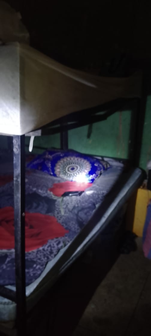 - Deborah’s bed space in the school’s hostel with her belongs unpacked.