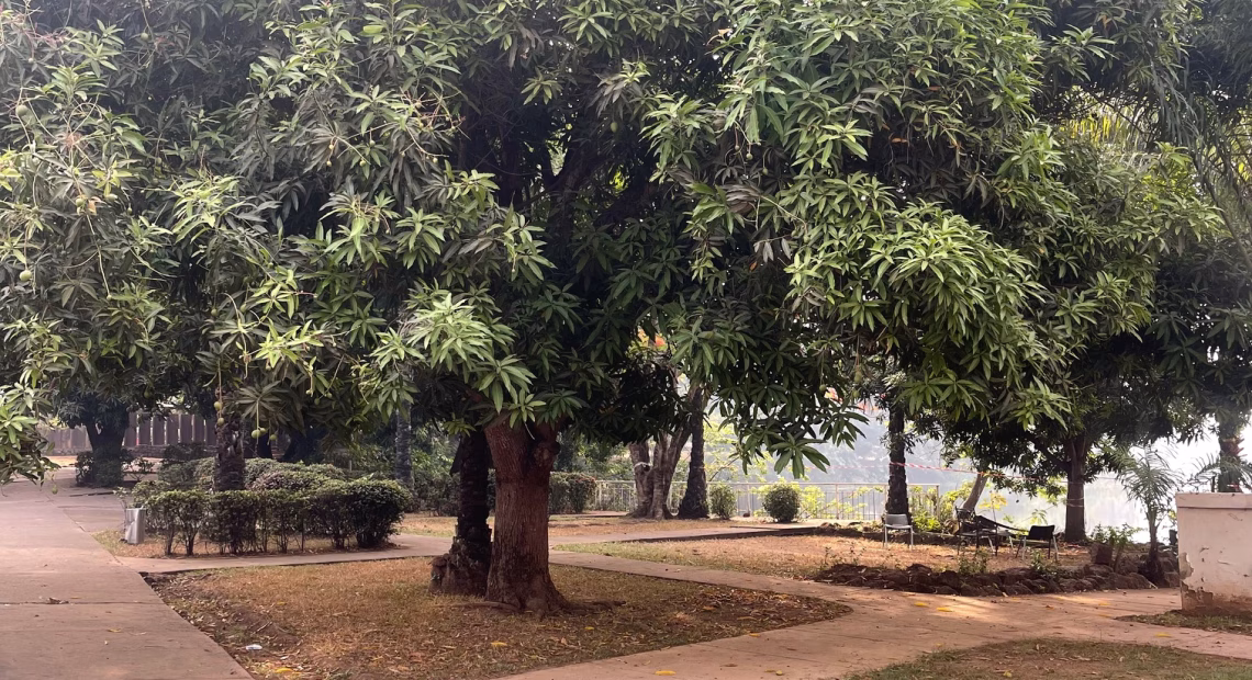 Across the open field is a consortium of tall trees, tall teak trees, a family of timber used for erecting electricity poles in Africa. They are in unison with mango, palm, coconut, guava trees, well-trimmed assorted flowers, and diverse shrubs. The serenity of the space and the beautiful sight shield the soul from the riotous noises a mile away from the hotel.